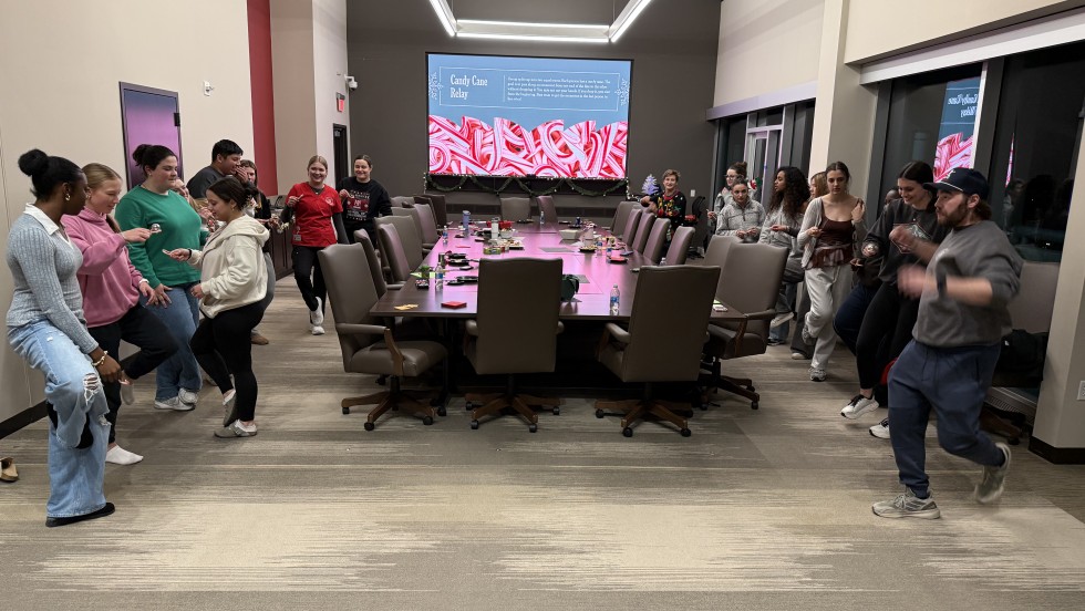 The end of semester celebration for the 911±¬ÁÏÍø Nursing LLC involved coming together to share a meal and some fun & games.