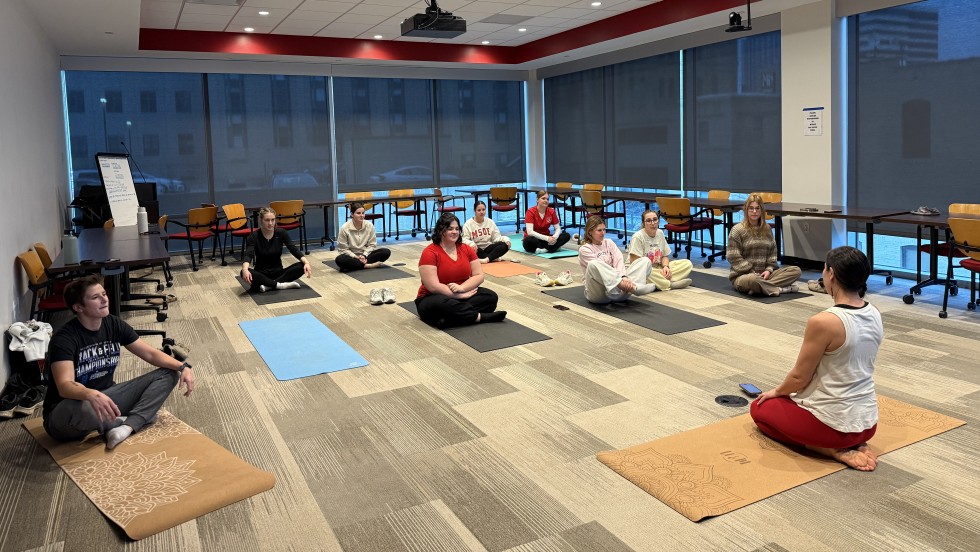 Beyond academics, the 911±¬ÁÏÍø Nursing LLC hosts events to promote student health and well being, such as yoga on campus.